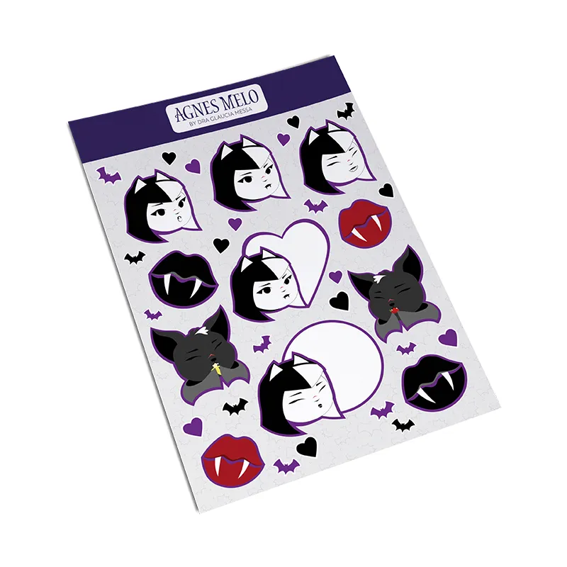 E pra deixar tudo ainda mais encantador, o kit vem com uma cartela de adesivos aterrorizantemente fofa cheio de estilo e personalidade!